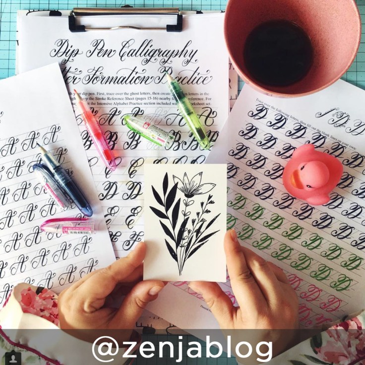 What supplies do I need in order to fill out these worksheet sets? Each worksheet set’s product page should list the required supplies. In general, you’ll need a pen, a nib, ink (such as sumi), pointed pen-friendly printer paper, water to swish off your nib, and a non-fibrous cleaning cloth.