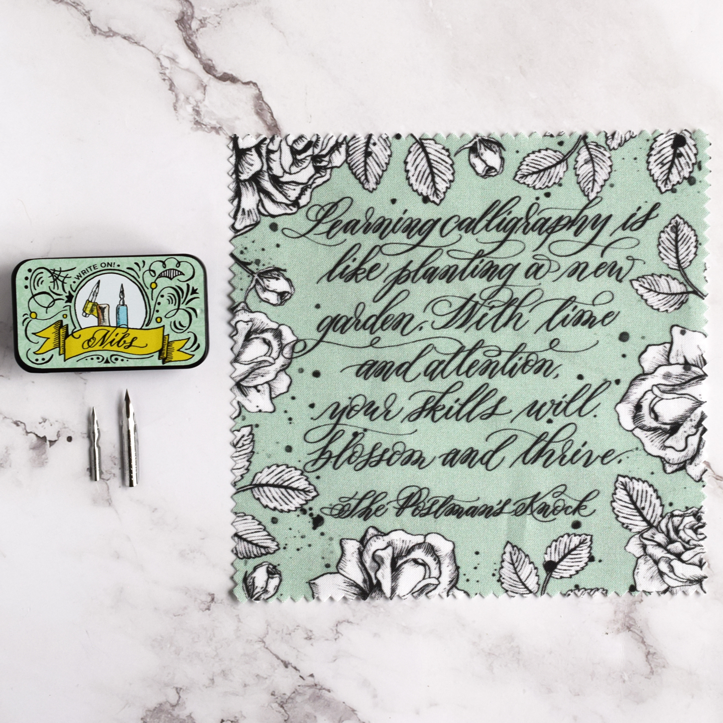 • Tightly woven cleaning cloth to wipe off your nibs throughout and after your writing sessions