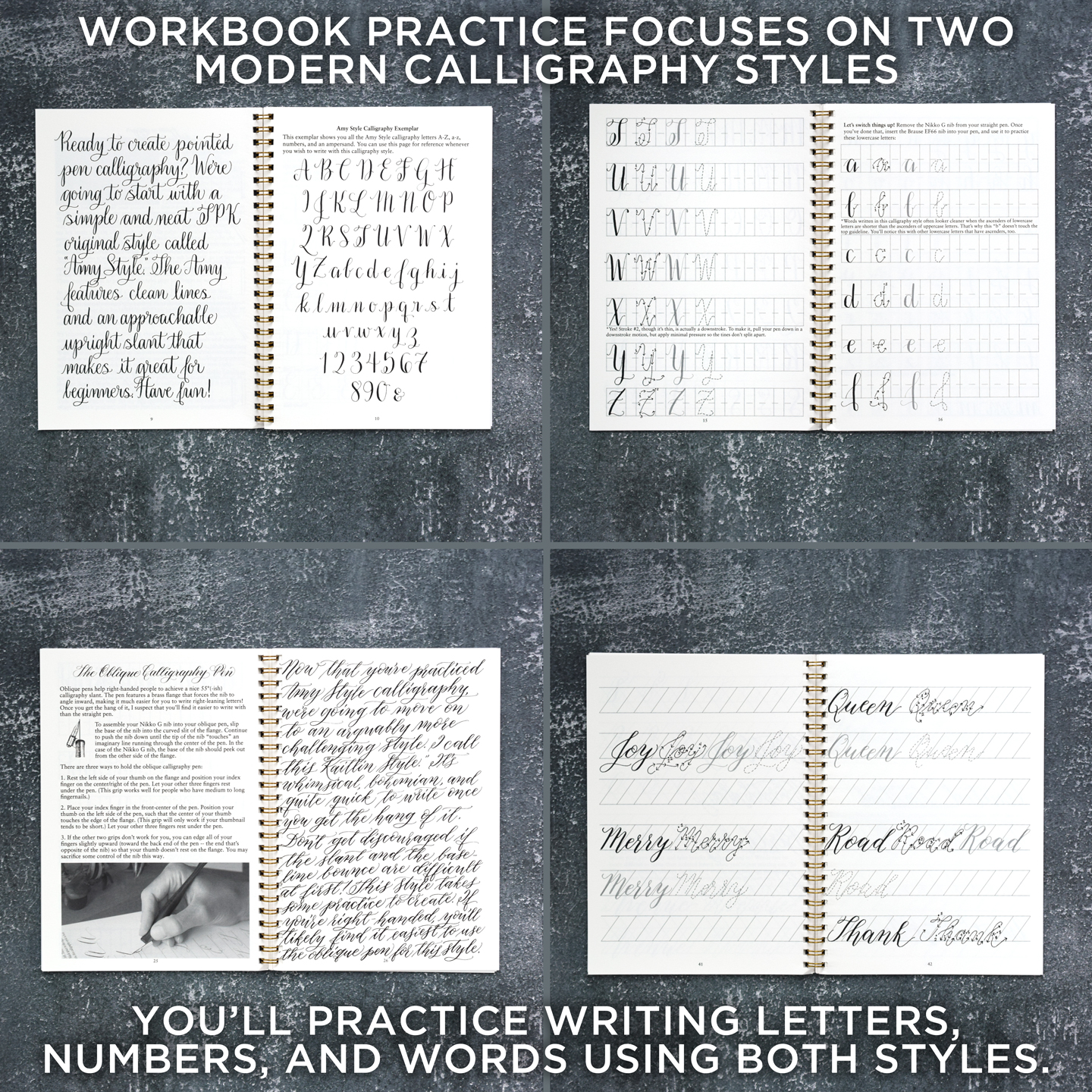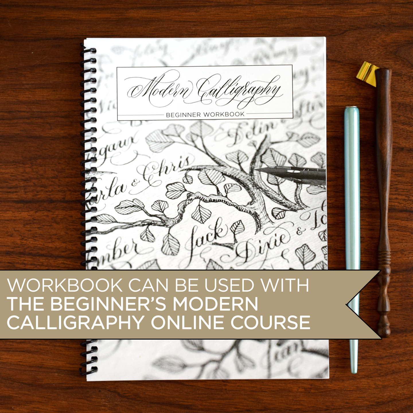 • 49-page workbook (6″ x 8.5″, 15.24 cm x 21.6 cm) full of information and guided practice (Workbook can be used to take The Beginner’s Modern Calligraphy Online Course.)